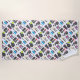 Stylish beach towel with funky pattern of makeup essentials dotted with stars.