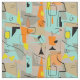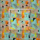 Mid-century modern rectangles pattern in orange, gold and teal on a beige background with black swirls and lines. The perfect fabric for your 50's mid-century decor.