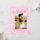 This modern graduation announcement features a vertical photo and hand-drawn stars with modern script "Graduate" in *red over a light pink background. The back is blank so you can easily add another photo and text if needed. *All colours of this design are customisable by using the editing tool!
