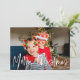This modern holiday photo card features white calligraphy script over a full-bleed (to the edges) photo. This design accommodates a single, horizontal photo on the front of the card. On the reverse side you will find a festive red and white diagonal stripe pattern which can be removed or changed. You can also add another photo or text to the back by selecting the "customise further" option.