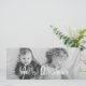 This modern holiday photo card features white calligraphy script over a full-bleed photo. This design accommodates a single, horizontal photo on the front of the card. On the reverse side you will find a festive red and white diagonal stripe pattern which can be removed or changed. You can also add another photo or text to the back by selecting the "customise further" option.