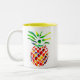 Watercolor colourful pineapple fruity beautiful funky design in yellow red and green. Original fine art painting design.