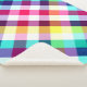 A small sized sherpa blanket featuring a colourful plaid pattern design in rainbow colours.