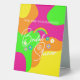 Bold and colourful retro bridal shower with flowers, rainbow, and peace sign