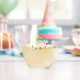 Bold and colourful retro bridal shower with flowers, rainbow, and peace sign