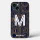 Funky Retro Groovy Navy Blue Gold Glitter Monogram Case-Mate iPhone Case