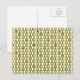 This funky postcard is embellished with a seventies inspired retro pattern in olive green with bead-like oblong shapes set at intervals along straight vertical lines. Each colour may be edited in this special graphic for a custom look.