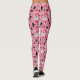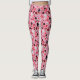 Funky pink rockabilly chick sock hop patterned leggings, printed all over with black poodles, cherries, roses, playing cards and dice