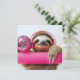 Funky Sloth with Pink Headphones and Disco Ball Holiday Card