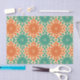 This snazzy design has a bit of a retro feel with a teal & orange Starburst look. The simple design looks fabulous in any setting!