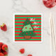 Festive, bold red and green stripey Christmas cocktail napkins with Christmas tree design.