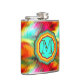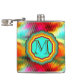Funky, fun personalised monogram hip flask. A beautiful, vibrant, colourful, multi coloured rainbow pattern in hot tropical colours with a pretty mat for you to personalise with your initial. A stylish, groovy, trendy, modern, colourful personalised / personalisable hip flask. Customise this bright, and cheerful, summery colours monogrammed hip flask with any letter. A classy, fashionable hip flask for him or her. Women and men will love this elegant, chic, cool summer design.
