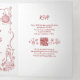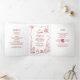 Funky Whimsical Doodles Modern Red Wedding Photo Tri-Fold Invitation
