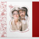 The "Drawn Together" Theme: The playful red illustrations—from the string of lights party vibes to the gourmet seafood plate—carry across all three panels, creating a visual story of your wedding day.