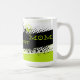 Fun an Funky Worlds Best Mum Mug. Splashes of Lime Green and Black shapes, splatters, and flowers. Wording and design are in a zig zag shape. Designed for todays mum with unique design, "NOT YOUR EVERYDAY MOM's mug"