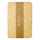 Add a touch of unique funky design to your home bathroom decor with this custom family name bath mat. This modern bath mat has a background pattern of yellow and white stripes and a gold area for your family last name and the date your family was established (or text of your choice).