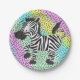 Cute Zebra prancing past a colourful, fun and squiggly funky background! This Zebra is having fun for sure and will certainly make you smile!