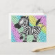 Cute Zebra prancing past a colourful, fun and squiggly funky background! This Zebra is having fun for sure and will certainly make you smile!