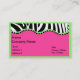Funky Zebra With Green Boarder Business Card