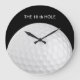 Golf wall clocks with amusing and clever design that includes and image of a golf ball near the 18 the hole. Designed for dad, guys, or teenage boys to decorate the walls of your den, recreation room, or man cave.