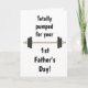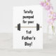 A funny 1st Father's Day card which features a barbell on the front of this cute first Father's Day card. On the inside reads a sweet sentiment, which you can easily personalize. The back has a place for the year. This happy 1st Father's Day card is great for a husband, boyfriend, son, nephew, son-in-law, etc A unique keepsake for him.