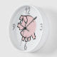 Funny cartoon illustration of a little pink pig (illustration n°3). Design on wall clock with young and modern numerals. Available with other funny cartoon illustrations. Matching clothing, home products, office products and more... Perfect for Chinese New Year of the Pig or Birthday (people born in Pig year). --- "The Pig (豬) is the twelfth and the last sign of the Earthly Branches (亥). In the continuous Sexagenary cycle, every twelfth year corresponds to Hai, and is commonly called "the Year of the Pig" (豬年). There are five types of Pigs, named after the Chinese elements. In order, they are: Metal, Water, Wood, Fire, and Earth.