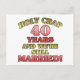 A funny wedding anniversary design that says 'Holy crap! We're still married!'