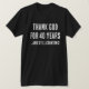 Thank God for reaching a 40th birthday milestone by celebrating in this funny Christian/religious inspired t-shirt. Features the text saying "Thank God for 40 years...and still counting!"