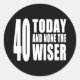 Funny 40th Birthdays : 40 Today and None the Wiser Classic Round Sticker