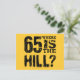 Funny 65th Year Birthday Save the Date V03 GOLD and BLACK. This Save the Date birthday postcard with its fun - Where is the Hill - sentiment accent is a modern yet elegant way to send out your 65th birthday save the date announcements. Text on back is customisable. Add your birthday party details!