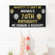 70th birthday party celebration decoration with 70th birthday humor and faux glittery balloons in gold and silver.