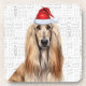 Fun coaster set for the person who loves their Afghan Hound. This one wears a Christmas Santa hat for a stylish approach to the holiday season, and sits cutely against a faded WOOF background to decorate your home or office with seasonal pet lover joy.