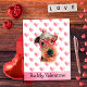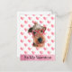 Funny Airedale Be My Valentine Dog Valentine's Day Holiday Postcard | Look to our cute hilarious Valentine's day dog holiday card! This adorable card features a cute dog with a party hat, funny big red glasses, white paws, and pink hearts. On the front has the saying "Be my Valentine". Whether you're sending it as a gift to a friend or family member who loves their dogs, this card makes a cute gift for all dog lovers!
