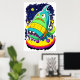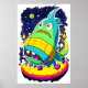 A blue green yellow funny looking alien with two eyes and two mouth. This is a AI generated art.