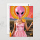 Funny Alien Lady in Pink Postcard