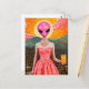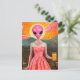 Funny Alien Lady in Pink With Orange Juice Postcard