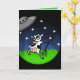 FUNNY ALIEN UFO COW ABDUCTION GREETING CARD