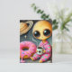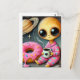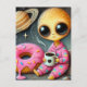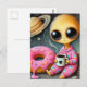 Funny Alien With Coffee and Doughnut in Space Postcard