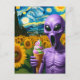 Funny Alien With Ice Cream Faux Van Gogh Postcard