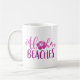 This fun coffee mug features text image "Aloha Beaches" in pink ombre glitter and personalised with your name along the side, or delete name for a clean look.