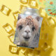 A Funny, Cute, Smiling Alpaca Photography Image with the text that says: "Don't Touch - I Spit". Llamas and alpacas are sweet animals but won't hesitate to spit at you. Closeup face of a beige, white, fawn coloured Alpaca. He has a smile for his closeup but will people dare touch this? The Alpaca is similar to, and often confused with, the llama.