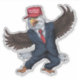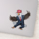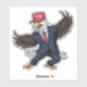 Show your patriotic spirit with this humourous sticker featuring an American eagle dressed like Donald Trump. Wearing a sharp suit and tie, complete with a signature red "Make America Great Again" hat, this sticker is perfect for adding a playful political touch to your laptop, water bottle, or car.