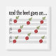 Funny music or beet saying with the words And the Beet Goes On and an illustration of sheet music with beets for notes. The beet is a healthy but funny vegetable and when set to music, even more fun!