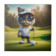 Pictured Dressed In Sunvisor, Shirt, Shoes, Ready To Play Golf Is A Funny Big Eyed Cat.