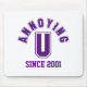 Do you have a Ph.D in Being-A-Pain-In-The-Bottom-ology? If so, this Funny Annoying U (You) Mousepad in purple is perfect to use around siblings or anyone else you love to annoy! With a university memorabilia feel, this humourous typographic design would make a great gift for yourself or any number of annoying folks you may know. Easy to customise, add the year you were born or other personalised text of your choosing. Click on the "Customise It" button to find additional personalisation options.