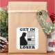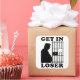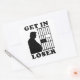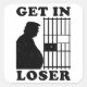 Anti Trump sticker for political humour fans. For real Americans who love democracy. Black graphic of a portly and corrupt Donald J Trump going to prison for all his crimes. "Get in loser". A grunge-style political sticker with humour and advocacy for justice. Perfect for activists, voters, or sarcastic friends who love edgy and funny political stickers.