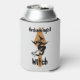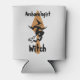 Funny Archaeologist Witch on a Broom and Trowel Can Cooler