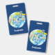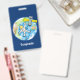 Funny astronaut in space and earth cartoon ID badge