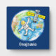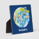 Funny astronaut in space and earth cartoon plaque