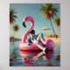 Funny Astronaut on Pink Flamingo Beach Wall art